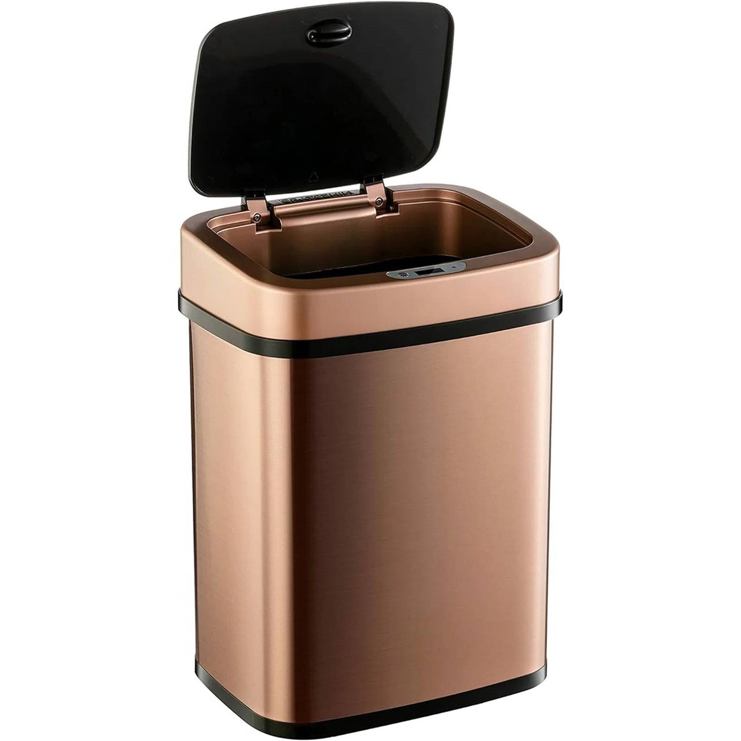 • 3-Gallon Copper Rose Gold Stainless Steel Trash Can with Motion Sensor Lid