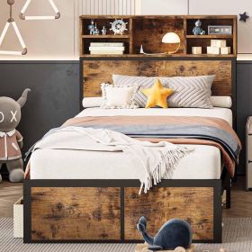 full size bed frame, Headboard With RGB LED lights (Color: Black, size: Queen)