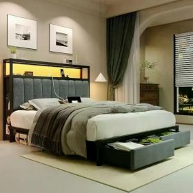 LED Queen Size Bed Frame with Headboard (Color: Dark Grey, size: Queen)