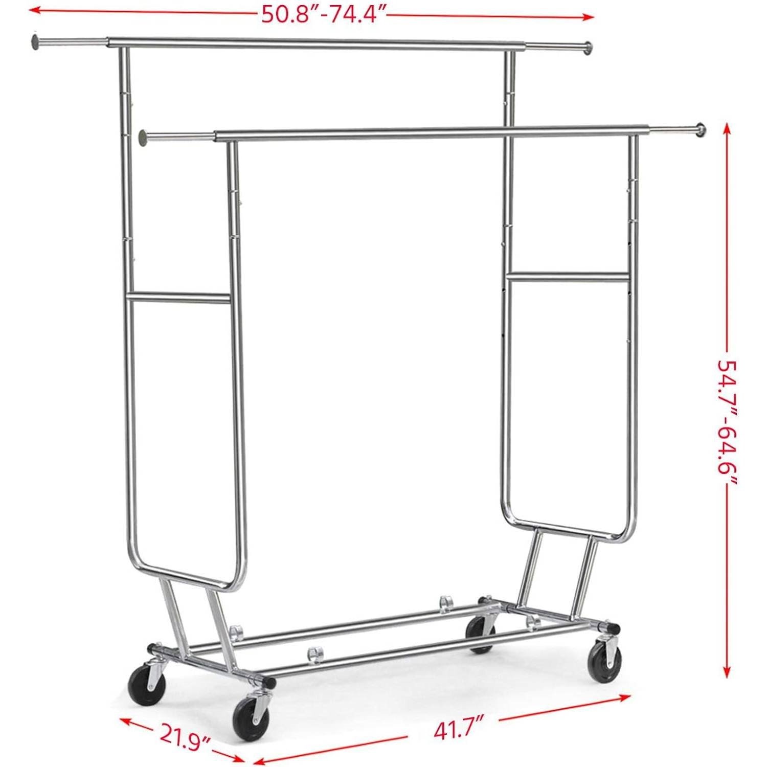 • Versatile rack for multiple scenarios: This double-rod garment rack offers extra closet space in dorm rooms, guest rooms, cloakrooms. Its easy mobility makes it also a handy piece in backstages, bridle shops, clothing stores, etc.