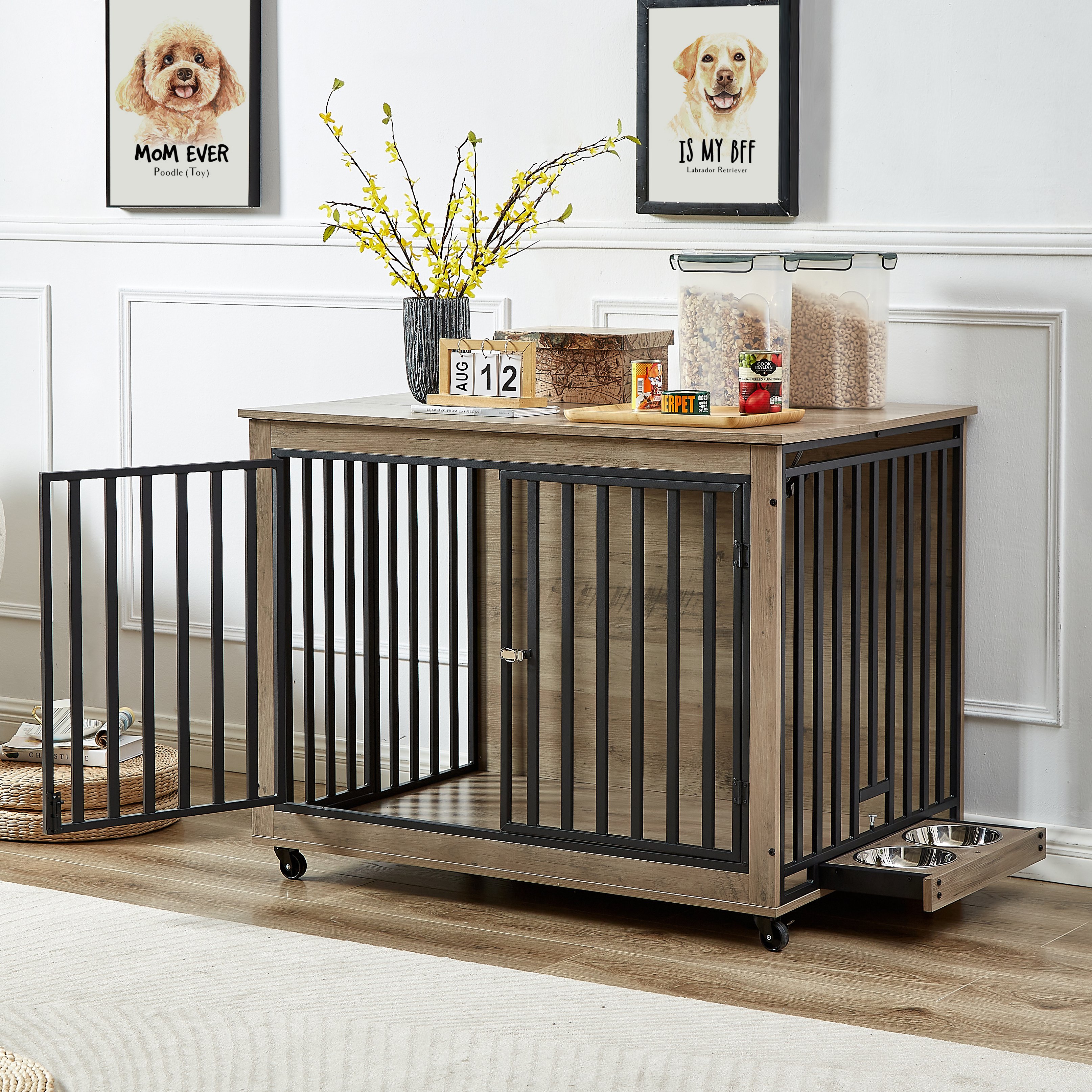 Easily accessible, this furniture-style dog crate is perfect for active dogs who like to come and go as they please.