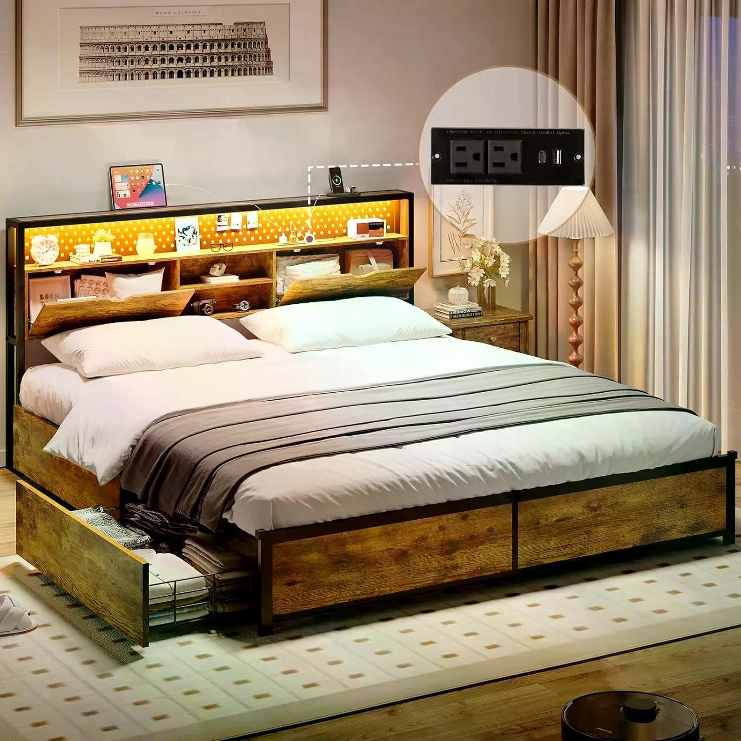 [Open & Hidden Storage Space]This led bed frame is also a storage giant. The headboard can be opened to reveal 2 secret storage space where you can store iPads, Magazines, private things etc.