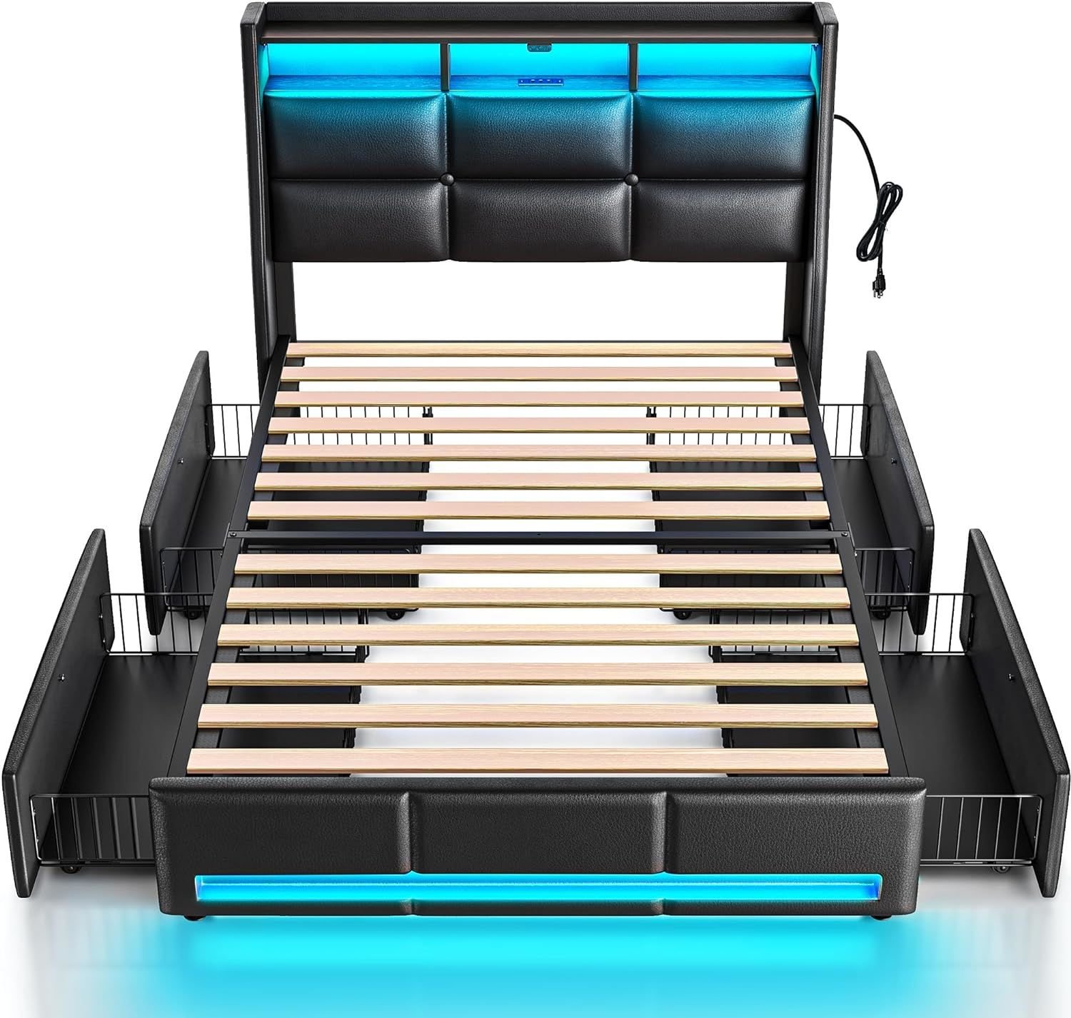 Component Contains Package: Headboard / Metal Slat Platform / 4 Drawres / Light Strips / Accessory Bag / Assembly Tool / Instructions