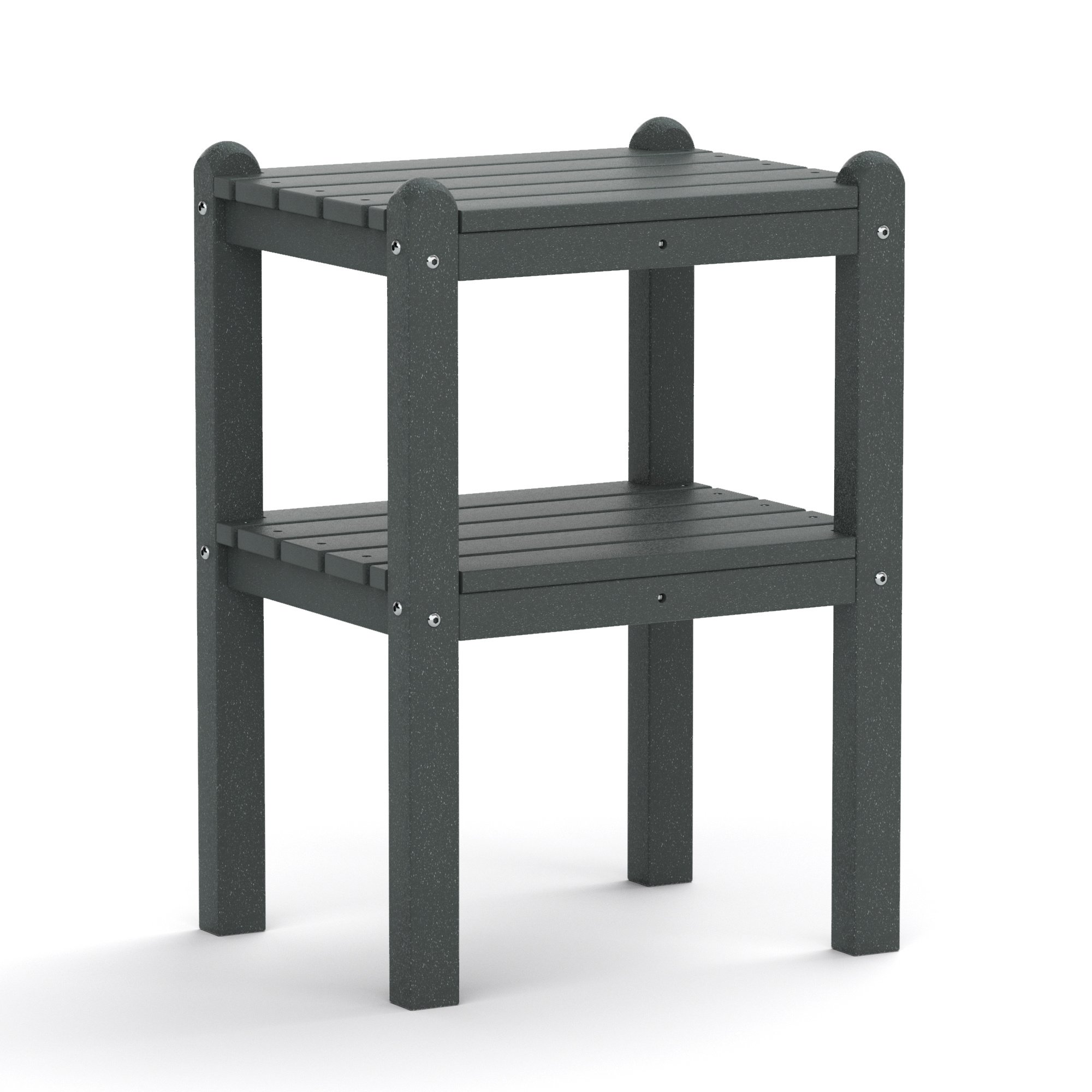 1.1.MATERIALSThe side table in HDPE (high density polyethylene) material and all parts connect together with stainless steel bolts hardware, Weather resistant and fade proof, waterproof. Easy to clean and long-lasting.
