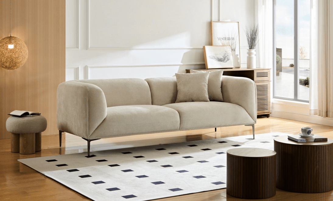 Beige sofa can be placed in multiple scenes,