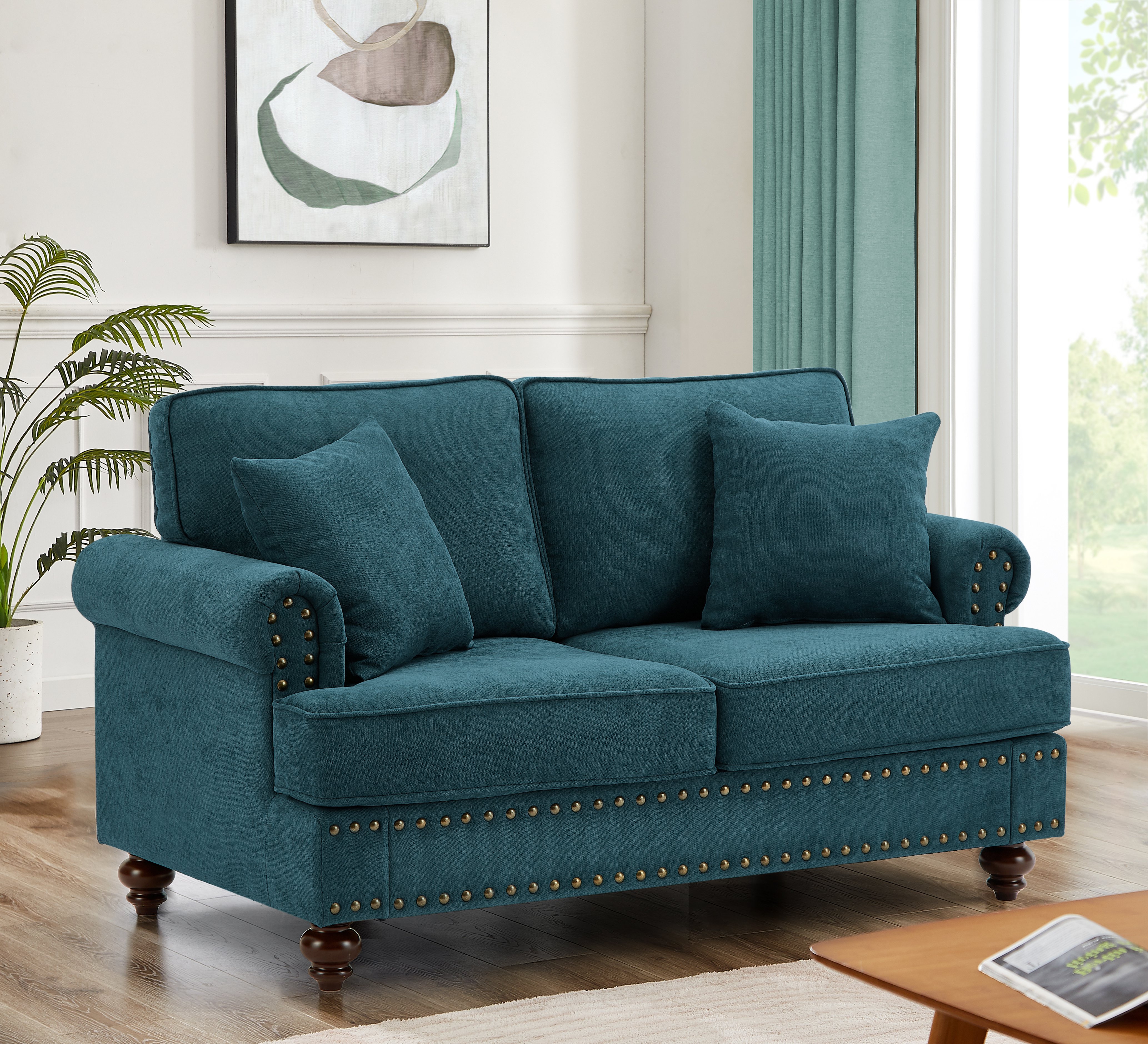 Modern Sofa for Living Room, 61" Green Chenille Sofa Couch, Sectional Love Seat Sofa Couch with Brown Legs, Upholstered Sofa for Apartment Bedroom Home Office
