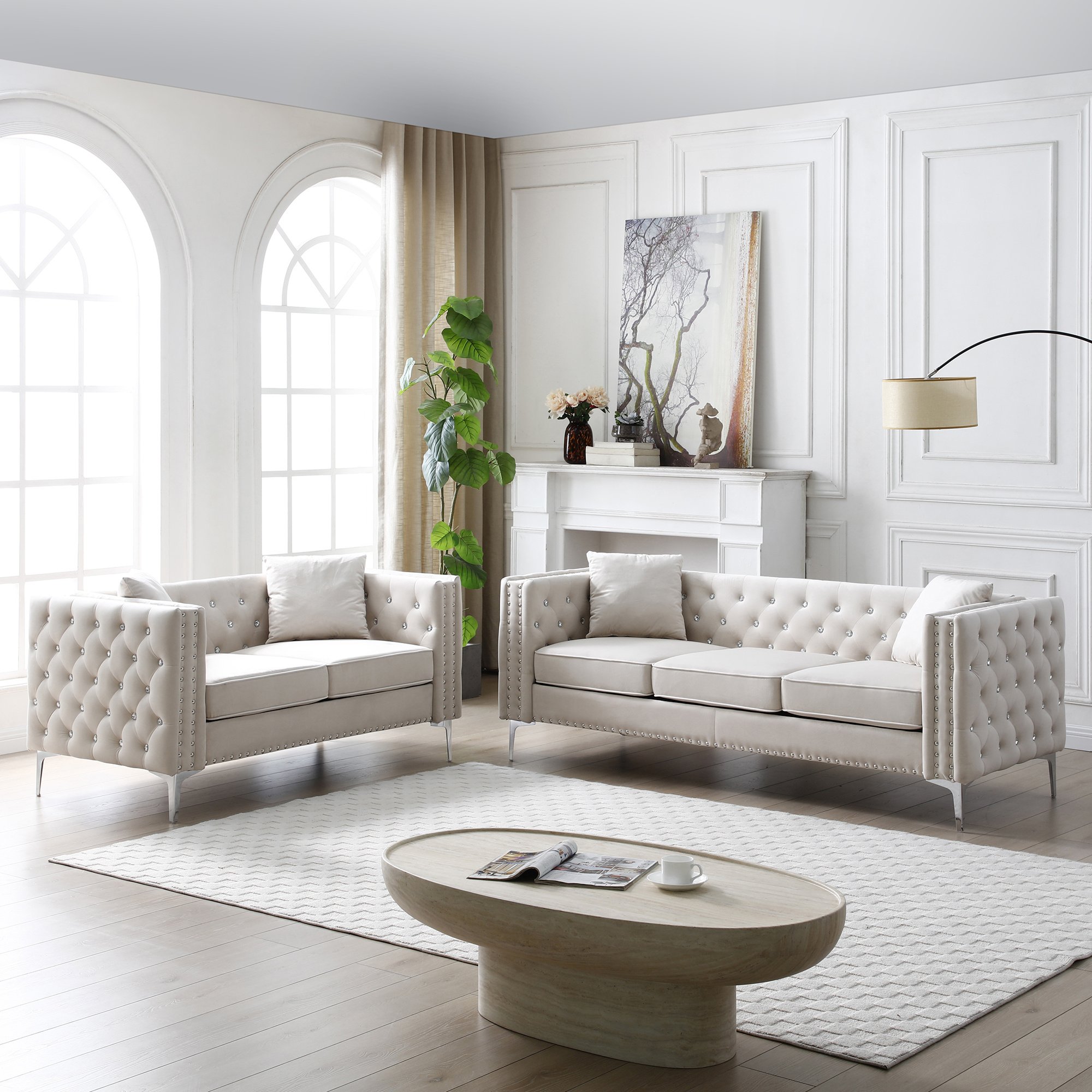 Stylish Style:The design fully considers the current popular furniture elements, tufted on the outside and inside of the arms and backs creates a casual yet modern vibe. jeweled buttoned and silver nailhead trimmed are suitable for home fashion elements.