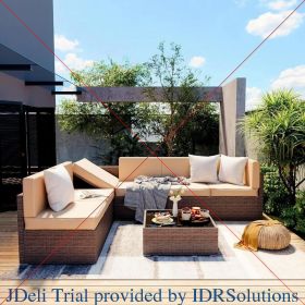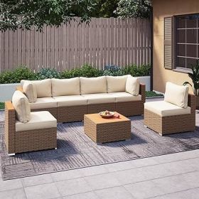 Patio Furniture Set, 7 Pieces (Color: 6 Pieces Beige)