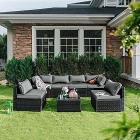 Patio Furniture Set, 7 Pieces (Color: 7Pieces DGrey)