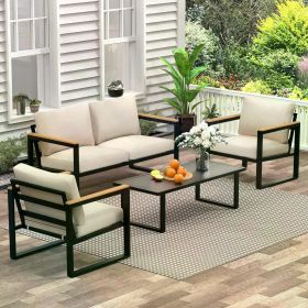 4-Piece Rope Patio Furniture Set, (Color: Beige+yellow)