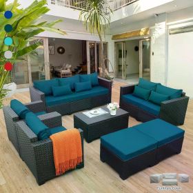 7 Piece Outdoor Furniture Set (Color: Peacock Blue, size: Storage Table)