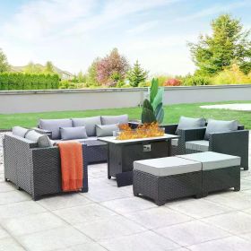 7 Piece Outdoor Furniture Set (Color: Light Grey, size: Fire Pit Table)