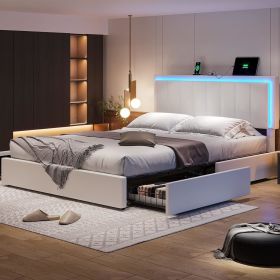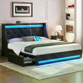 Twin Bed Frame with LED Lights and Charging Station (Color: Black, size: Queen)