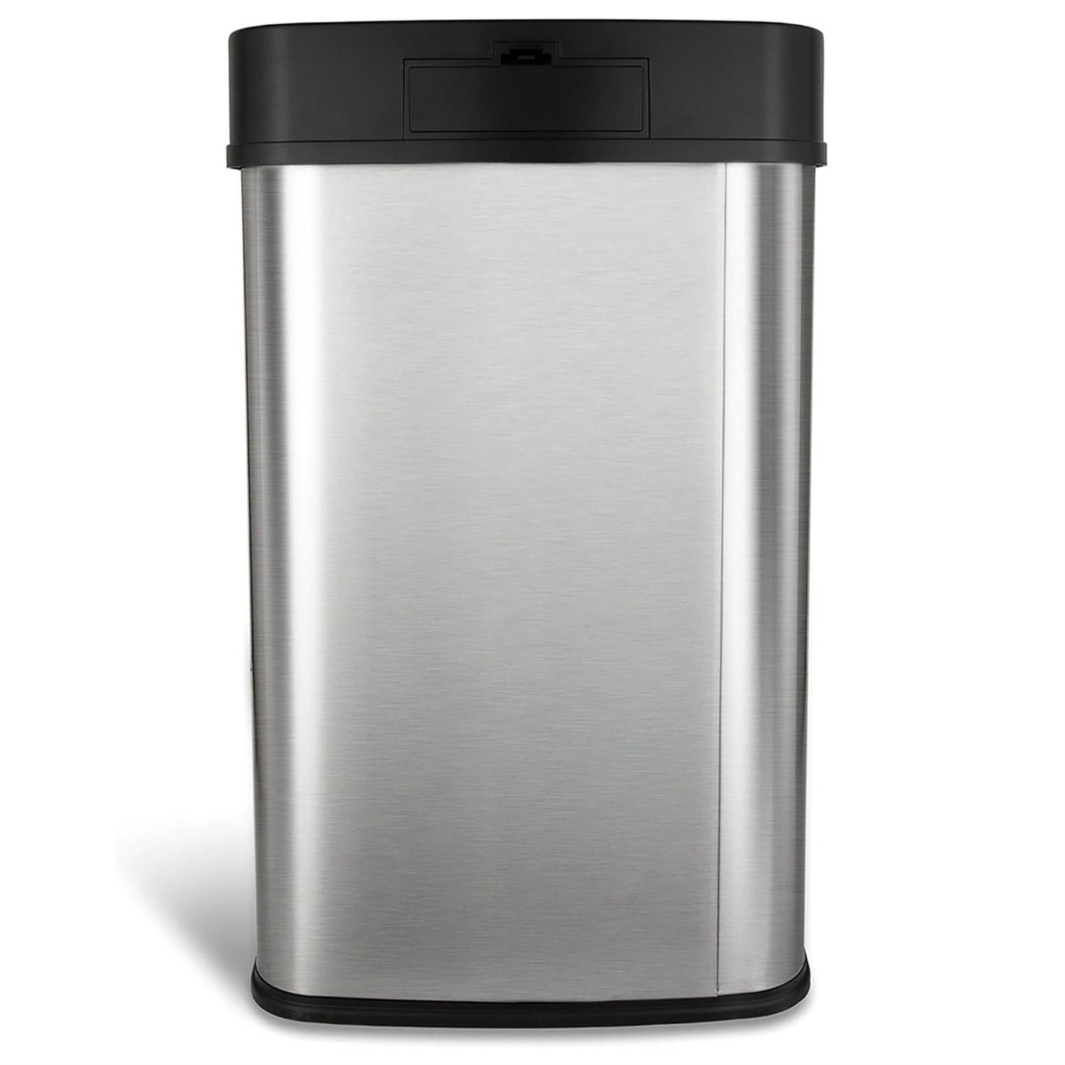This 13-Gallon Stainless Steel Kitchen Trash Can with Motion Sensor Lid is ideal for the kitchen, breakroom, or restroom. Place your hand in sensor range and the lid will automatically open for you. When out of sensor range the lid will automatically close. No need to touch the trash can. Ring liner will hold and conceal the trash bag within the trash can.
